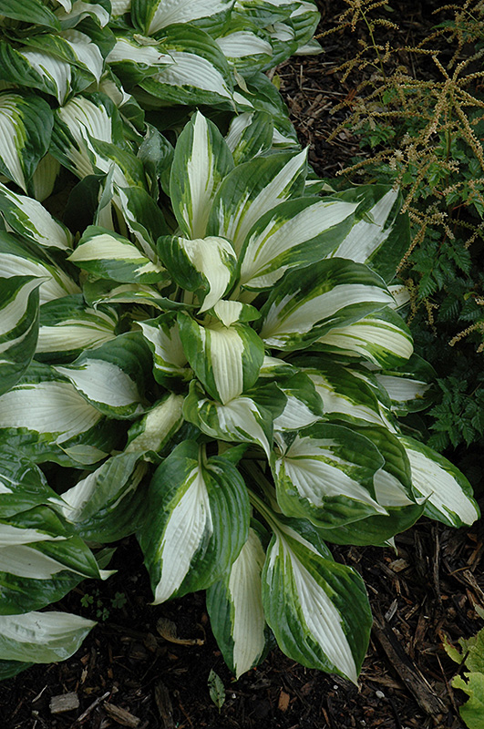 Hardiness Zone: 3 Other Names: Plantain Lily, Funkia Description: This stand-out variety produces dazzling white leaves with blue-green edges and chartreuse-gold variegation; white scapes with lavender flowers in mid to late summer; provides beautiful texture and color to the garden Ornamental Features Vulcan Hosta features dainty spikes of lavender tubular flowers rising above the foliage from mid to late summer. Its attractive textured pointy leaves remain white in color with distinctive bluish-green edges and tinges of chartreuse throughout the season. Landscape Attributes Vulcan Hosta is a dense herbaceous perennial with tall flower stalks held atop a low mound of foliage. Its relatively fine texture sets it apart from other garden plants with less refined foliage. This is a relatively low maintenance plant, and is best cleaned up in early spring before it resumes active growth for the season. Gardeners should be aware of the following characteristic(s) that may warrant special consideration; Vulcan Hosta is recommended for the following landscape applications; Planting & Growing Vulcan Hosta will grow to be about 18 inches tall at maturity extending to 24 inches tall with the flowers, with a spread of 3 feet. When grown in masses or used as a bedding plant, individual plants should be spaced approximately 30 inches apart. Its foliage tends to remain dense right to the ground, not requiring facer plants in front. It grows at a medium rate, and under ideal conditions can be expected to live for approximately 10 years. As an herbaceous perennial, this plant will usually die back to the crown each winter, and will regrow from the base each spring. Be careful not to disturb the crown in late winter when it may not be readily seen! This plant does best in partial shade to shade. It prefers to grow in average to moist conditions, and shouldn't be allowed to dry out. It is not particular as to soil type or pH. It is somewhat tolerant of urban pollution. This particular variety is an interspecific hybrid. It can be propagated by division; however, as a cultivated variety, be aware that it may be subject to certain restrictions or prohibitions on propagation.