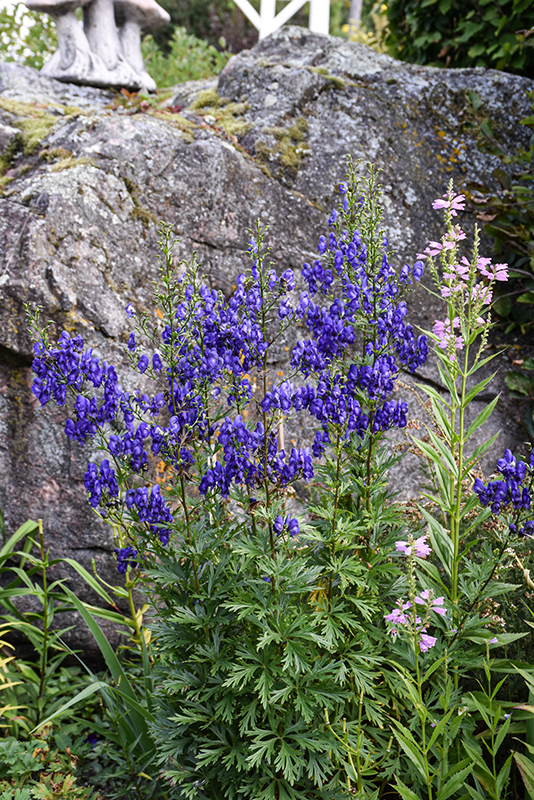 Hardiness Zone: 2 Other Names: Wolfsbane Description: A highly toxic perennial that presents beautiful hooded purple-blue flowers and dark green ferny foliage; lovely accent for containers and garden beds; prune after flowering; should not be grown around children or in vegetable gardens Ornamental Features Common Monkshood features bold spikes of navy blue hooded flowers rising above the foliage from early to late summer. The flowers are excellent for cutting. Its attractive deeply cut ferny leaves remain dark green in color throughout the season. Landscape Attributes Common Monkshood is an herbaceous perennial with a rigidly upright and towering form. Its relatively fine texture sets it apart from other garden plants with less refined foliage. This plant will require occasional maintenance and upkeep, and is best cleaned up in early spring before it resumes active growth for the season. It is a good choice for attracting bees, butterflies and hummingbirds to your yard, but is not particularly attractive to deer who tend to leave it alone in favor of tastier treats. It has no significant negative characteristics. Common Monkshood is recommended for the following landscape applications; Planting & Growing Common Monkshood will grow to be about 3 feet tall at maturity extending to 4 feet tall with the flowers, with a spread of 24 inches. It tends to be leggy, with a typical clearance of 1 foot from the ground, and should be underplanted with lower-growing perennials. The flower stalks can be weak and so it may require staking in exposed sites or excessively rich soils. It grows at a medium rate, and under ideal conditions can be expected to live for approximately 15 years. As an herbaceous perennial, this plant will usually die back to the crown each winter, and will regrow from the base each spring. Be careful not to disturb the crown in late winter when it may not be readily seen! This plant performs well in both full sun and full shade. It prefers to grow in average to moist conditions, and shouldn't be allowed to dry out. It is not particular as to soil type or pH. It is highly tolerant of urban pollution and will even thrive in inner city environments. Consider applying a thick mulch around the root zone over the growing season to conserve soil moisture. This species is not originally from North America, and parts of it are known to be toxic to humans and animals, so care should be exercised in planting it around children and pets. It can be propagated by division. Common Monkshood is a fine choice for the garden, but it is also a good selection for planting in outdoor pots and containers. With its upright habit of growth, it is best suited for use as a 'thriller' in the 'spiller-thriller-filler' container combination; plant it near the center of the pot, surrounded by smaller plants and those that spill over the edges. It is even sizeable enough that it can be grown alone in a suitable container. Note that when growing plants in outdoor containers and baskets, they may require more frequent waterings than they would in the yard or garden.