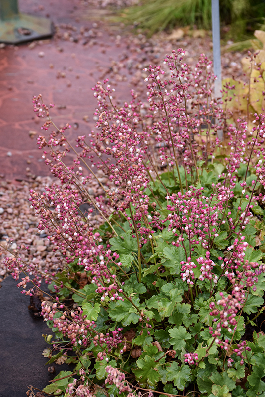 Hardiness Zone: 4 Other Names: Sandia Mountain Alumroot, Mountain Coral Bells Brand: Plant Select Description: This tidy, miniature variety features spikes of nodding pink and white bells, rising in late spring from a compact, dense mound of cupped, ruffled green foliage; great versatility; keep soil moist in heat of summer; xeric when planted in shade Ornamental Features Sandia Coral Bells features showy spikes of shell pink bell-shaped flowers with white overtones rising above the foliage from late spring to early summer, which emerge from distinctive hot pink flower buds. Its attractive crinkled lobed leaves emerge light green in spring, turning green in color the rest of the year. Landscape Attributes Sandia Coral Bells is a dense herbaceous evergreen perennial with tall flower stalks held atop a low mound of foliage. Its relatively fine texture sets it apart from other garden plants with less refined foliage. This plant will require occasional maintenance and upkeep, and should be cut back in late fall in preparation for winter. It is a good choice for attracting bees and hummingbirds to your yard. It has no significant negative characteristics. Sandia Coral Bells is recommended for the following landscape applications; Planting & Growing Sandia Coral Bells will grow to be only 6 inches tall at maturity extending to 12 inches tall with the flowers, with a spread of 14 inches. When grown in masses or used as a bedding plant, individual plants should be spaced approximately 12 inches apart. Its foliage tends to remain low and dense right to the ground. It grows at a medium rate, and under ideal conditions can be expected to live for approximately 10 years. As an evegreen perennial, this plant will typically keep its form and foliage year-round. This plant performs well in both full sun and full shade. However, you may want to keep it away from hot, dry locations that receive direct afternoon sun or which get reflected sunlight, such as against the south side of a white wall. It prefers to grow in average to moist conditions, and shouldn't be allowed to dry out. It is not particular as to soil type or pH. It is somewhat tolerant of urban pollution. Consider covering it with a thick layer of mulch in winter to protect it in exposed locations or colder microclimates. This species is native to parts of North America. It can be propagated by division. Sandia Coral Bells is a fine choice for the garden, but it is also a good selection for planting in outdoor pots and containers. It is often used as a 'filler' in the 'spiller-thriller-filler' container combination, providing a mass of flowers and foliage against which the larger thriller plants stand out. Note that when growing plants in outdoor containers and baskets, they may require more frequent waterings than they would in the yard or garden.