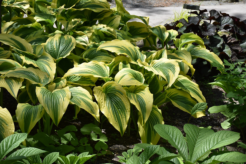 Gold-Variegated Mountain Hosta Hosta montana 'Aureomarginata' Plant Height: 32 inches Flower Height: 4 feet Spacing: 4 feet