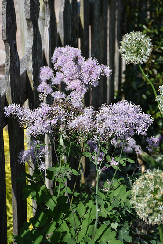Hardiness Zone: 4 Other Names: T. aquilegifolium Description: A beautiful plant from our native meadows with columns of steely blue foliage arising in spring, turning to a glaucous green; stately stems topped with bright white and violet flowers; lovely massed along borders; will readily naturalize Ornamental Features Meadow Rue features dainty panicles of white star-shaped flowers rising above the foliage in early summer. The flowers are excellent for cutting. Its ferny leaves are bluish-green in color. As an added bonus, the foliage turns a gorgeous olive green in the fall. The olive green stems can be quite attractive. Landscape Attributes Meadow Rue is an herbaceous perennial with an upright spreading habit of growth. It brings an extremely fine and delicate texture to the garden composition and should be used to full effect. This is a relatively low maintenance plant, and should be cut back in late fall in preparation for winter. It is a good choice for attracting bees and butterflies to your yard, but is not particularly attractive to deer who tend to leave it alone in favor of tastier treats. It has no significant negative characteristics. Meadow Rue is recommended for the following landscape applications; Planting & Growing Meadow Rue will grow to be about 3 feet tall at maturity extending to 4 feet tall with the flowers, with a spread of 24 inches. When grown in masses or used as a bedding plant, individual plants should be spaced approximately 18 inches apart. It grows at a medium rate, and under ideal conditions can be expected to live for approximately 10 years. As an herbaceous perennial, this plant will usually die back to the crown each winter, and will regrow from the base each spring. Be careful not to disturb the crown in late winter when it may not be readily seen! This plant does best in partial shade to shade. It does best in average to evenly moist conditions, but will not tolerate standing water. It is particular about its soil conditions, with a strong preference for rich, acidic soils. It is somewhat tolerant of urban pollution. This species is native to parts of North America. It can be propagated by division.